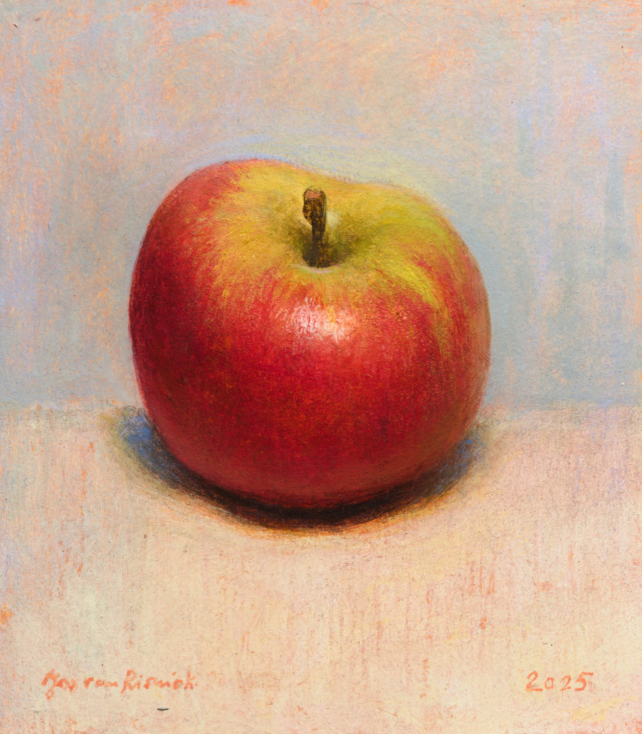 Small still life with red apple on white table (RESERVED. Please contact me if you are also interested in this painting.)